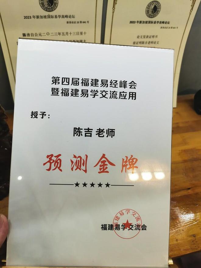 曾于2016年獲得《福建易學(xué)交流與應用》金牌獎,2019年《中華易經(jīng)實戰應用賽》第二名,受邀2023年《新加坡國(guó)際易學(xué)高峰論壇》之《六爻的時代解讀》。并受邀《2023河南安陽周易大會》等。